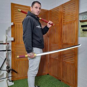 Utilize o suporte de mesa incluso para exibir a katana de forma segura e elegante.