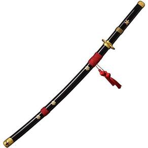 Katana espada anime one piece yama enma roronoa wado aço Enma é uma katana muito poderosa, chegando a ser considerada uma espada que poucos são capazes de empunhar. Ela foi uma das espadas do lendário samurai, kozuki oden do país de wano e tem a habilidade de extrair todo o haki do corpo do usuário. Ideal para deixar seu cosplay o mais realista possível com um acabamento perfeito pintura brilhosa em seu punho e bainha.
