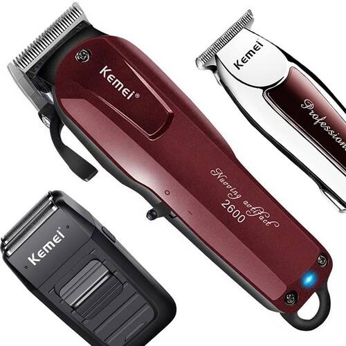 Modelo: KM-9163/KM-9164 Acompanha 3 pentes guia tamanhos 1mm/2mm/3mm Para você já receber e começar a praticar seus cortes Totalmente recarregável em uma entrada USB, acompanha o cabo USB - 2 a 5 horas de carga lhe dá de 1 a 2 horas de uso. Potência: 3-5W Voltagem Bivolt: 110/ 220