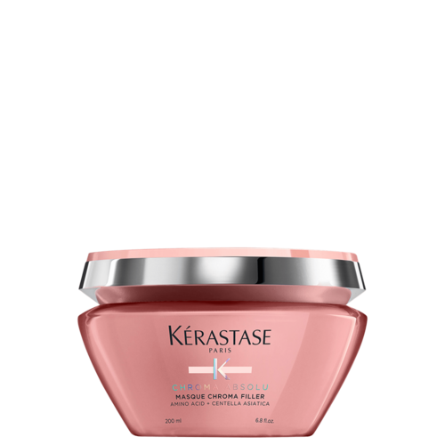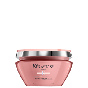Máscara para cabelos com coloração, sensibilizados ou danificados, indicado para fios médios a grossos. Kérastase Chroma Absolu Filler oferece hidratação profunda e reduz o efeito frizz.