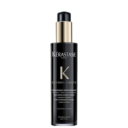 Leave-In regenerador para todos os tipos de cabelos, revitaliza e suaviza a textura da fibra capilar, protege os fios do calor de até 230°C e controla o frizz por até 24 horas. Traz fórmula em creme, enriquecida com Ácido Hialurônico, Abyssine e Vitamina E, que ajuda a regenerar a fibra capilar e combater os sinais de envelhecimento do cabelo. Facilita a secagem para um cabelo com movimento, maciez e brilho. Possui envolvente fragrância Chronologiste, que inclui os aromas de chá de rosa, madeiras leves e almíscar.