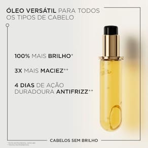 Como usar: Aplique algumas gotas do Elixir Ultime nos cabelos úmidos ou secos, massageando suavemente do comprimento às pontas. Você pode usá-lo antes da escova, como finalizador ou para controlar o frizz durante o dia. Resultados:
