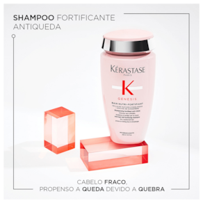 Shampoo antiqueda para cabelos secos e grossos. Kérastase Genesis Bain-Nutri Fortifiant promove uma purificação suavemente e fortalece a fibra capilar, para reduzir o risco queda.