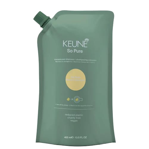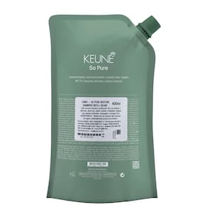 O Shampoo Keune So Pure Restore possui uma fórmula vegana intensa que higieniza as madeixas sem agredir, confere sedosidade e brilho. Além disso, a embalagem foi desenvolvida em sistema de refil para amenizar a poluição do meio ambiente.