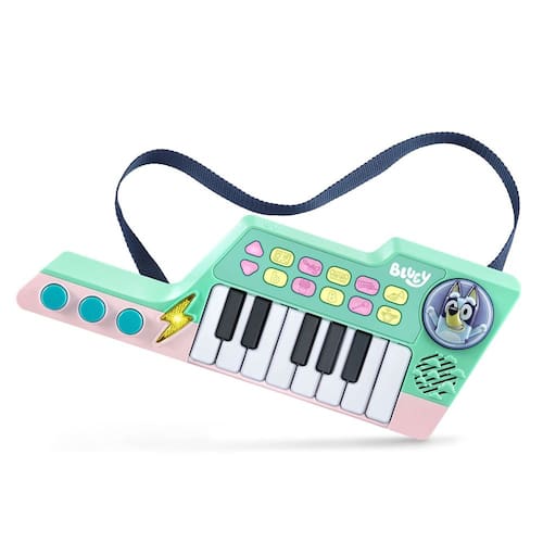 - Escolha entre 10 instrumentos e efeitos sonoros para fazer as notas do teclado soarem como uma guitarra, Chattermax, Bingo, irmã de Bluey e muito mais; ouça Bluey também pressionando o botão com a foto dela nela - Saia sem deixar cair a tecla adicionando a alça incluída - Destinado a de 3 a 6 anos; requer 2 pilhas AA; baterias incluídas somente para fins de demonstração; baterias novas recomendadas para uso regular
