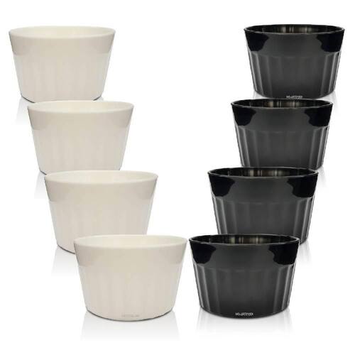 O Ramequim é ideal para servir doces, sobremesas, molhos e muito mais, perfeito para decorar sua mesa com petiscos e porções de degustação, deixe sua mesa com mais elegância com os copos Ramequim da krystalON. Características: Material: Plástico Polipropileno NÃO É CERAMICA/ PORCELANA, Altura: 4,5 cm, Diâmetro: 7,5 cm, Capacidade: 90 ml, Cor: Branco/ Preto, Tamanho: Ùnico, Quantidade: 8 Peças 4 Ramequins branco e 4 Ramequins Preto Ficha técnica - Forma: Redonda - Material: Melamina - Cor principal: Branco - Capacidade em volume: 90 ml - Utilizações seguras: Lava-louças - Diâmetro: 7,5 cm - Cor: Branco - Unidades por embalagem: 8 - Com data de validade: Não - Fonte do produto: KrystalON Copos