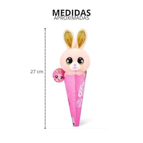 Características / Composição - Tamanho: Aproximadamente 26 cm incluindo o cone . - Idade Recomendada: A partir de 3 anos. - Itens Inclusos: 1 pelúcia e 1 surpresa no cone. - Material: Pelúcia macia de alta qualidade e cone resistente. - Marca: Fun.