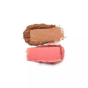 Blush duplo: pó mate e cremoso com acabamento brilhante.