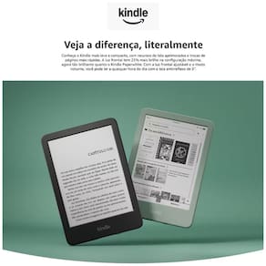 A bateria de longa duração é outro destaque, com autonomia de até 6 semanas, dependendo do uso. Conectividade Wi-Fi de 2,4 GHz e 5 GHz garante downloads rápidos e sincronização eficiente com sua conta Amazon. Sendo da 11ª geração, este modelo 2024 incorpora avanços tecnológicos que otimizam sua experiência de leitura.