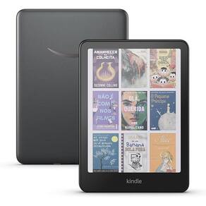 - Tela: Tela de 7 polegadas com tecnologia Colorsoft, iluminação embutida, 300 ppi em preto e branco, tecnologia de fonte otimizada e escala de cinza com 16 níveis. Por conta da camada de filtro colorido, que proporciona uma experiência de leitura agradável, você pode notar que a imagem ou o brilho da tela Colorsoft são diferentes da tela Paperwhite do Kindle.