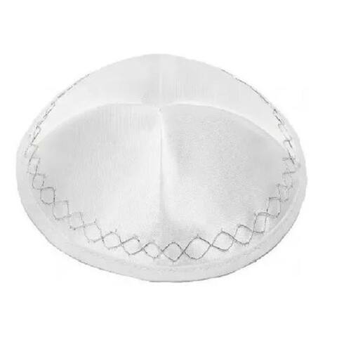 Kipá De Cetim Branco Com Bordado Em Prata - De Israel
