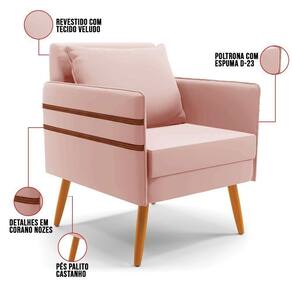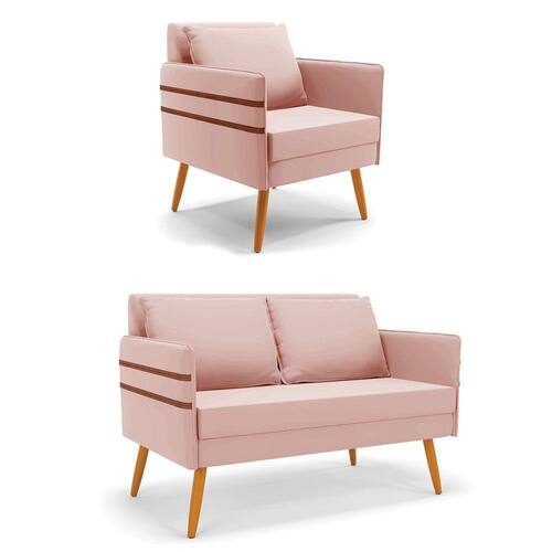 Kit 01 Namoradeira 02 Lugares E 01 Poltrona Mari Veludo Pés Palito Castanho - D'rossi Cor Rose
