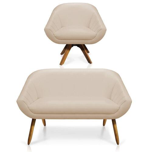 Do nosso grande sucesso Giovana apresentamos para você o Kit 01 Namoradeira e 01 Poltrona, esse Kit traz consigo um toque de delicadeza por conta do formato arredondado de seu encosto, garantindo além de muito conforto uma personalidade única para seu ambiente. Ele vai deixar seu ambiente decorado e pronto para receber suas visitas, família e amigos. Produzido em madeira reflorestada de eucalipto, é estofado em Espuma D-26 e possuí seus pés em madeira, garantindo uma maior resistência e durabilidade ao produto.