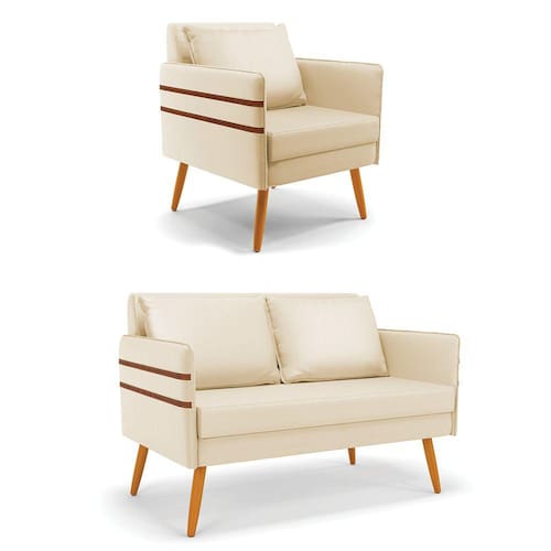 Que tal o kit Namoradeira e Poltrona Mari? Imagine-se utilizando esse kit e usufruindo de todos os benefícios que ele oferece. Pode ser utilizado para evidenciar e enriquecer o seu ambiente, descansar depois de um dia longo de trabalho, ver aquela série favorita ou simplesmente ler seu livro predileto. A estrutura deste conjunto é confeccionada em madeira de eucalipto proveniente de reflorestamento, suportando em média até 120 Kg, possuí pés palito castanho, garantindo uma maior resistência e durabilidade ao produto, o estofamento do assento e encosto é composto de espuma D-23, revestido em tecido Corino no tom Preto. Então, se a sua dificuldade é a otimização de espaço, este Kit além de confortável e sofisticado, traz toda a funcionalidade que você precisa. Apenas alguns conjuntos estão disponíveis, separe o seu Kit 01 Namoradeira e 01 Poltrona Mari antes que acabem!