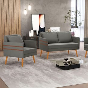 Que tal o kit Namoradeira e Poltrona Mari? Imagine-se utilizando esse kit e usufruindo de todos os benefícios que ele oferece. Pode ser utilizado para evidenciar e enriquecer o seu ambiente, descansar depois de um dia longo de trabalho, ver aquela série favorita ou simplesmente ler seu livro predileto. A estrutura deste conjunto é confeccionada em madeira de eucalipto proveniente de reflorestamento, suportando em média até 120 Kg, possuí pés palito castanho, garantindo uma maior resistência e durabilidade ao produto, o estofamento do assento e encosto é composto de espuma D-23, revestido em tecido Suede no tom Grafite. Então, se a sua dificuldade é a otimização de espaço, este Kit além de confortável e sofisticado, traz toda a funcionalidade que você precisa. Apenas alguns conjuntos estão disponíveis, separe o seu Kit 01 Namoradeira e 01 Poltrona Mari antes que acabem!