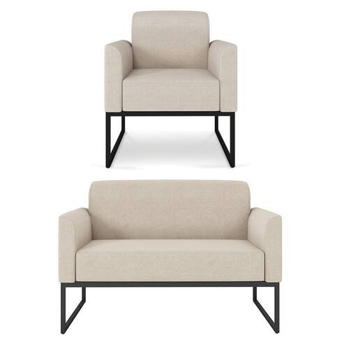 Do nosso grande sucesso a Elisa, apresentamos para você o Kit 01 Namoradeira e 01 Poltrona Marisa, que vai encher seu ambiente de cor e modernidade! Seu design feito com linhas retas proporciona conforto ao sentar-se sem falar em seus detalhes no assento e no encosto, um luxo! Sua estrutura robusta é confeccionada em madeira de eucalipto proveniente de reflorestamento, o estofamento do assento é composto de espuma prorelax D-23 no encosto e revestido em tecido Linho, sua sustentação é dada por uma base industrial metálica, suportando em média até 240 Kg a Namoradeira e 120 Kg cada Poltrona.