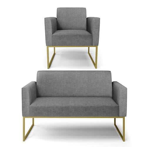 Todo mundo gosta de um ambiente bem decorado, e se for novidade melhor ainda não é mesmo? A D'Rossi, além de entregar beleza, qualidade e confiança aos clientes, ela dispõe das melhores opções em produtos, disponíveis no mercado! Se você quer um produto sofisticado, opte pelo Sofá Namoradeira com Poltrona Marisa. Este kit dispõe de um tom lindo no Grafite, uma cor leve, neutra e delicada que combina com qualquer estilo de decoração. Ele fica perfeito na sala, escritório, quarto, varanda coberta e onde mais preferir! Sua estrutura é feita em madeira reforçada de eucalipto proveniente de reflorestamento. No assento/encosto contém um revestimento no tecido Linho, com estofamento em espuma prorelax D-23, garantindo maior conforto ao usuário. A sustentação da peça é dada pelos Base Industrial Dourado, garantindo uma resistência melhor, para relaxar o dia todo com mais comodidade. O Sofá Namoradeira com Poltrona Marisa é ideal, para dar aquele realce que seu ambiente precisa. Tenho certeza que, esse móvel é a melhor compra que você irá fazer. Garanta já seu Kit e se acomode da melhor maneira possível!