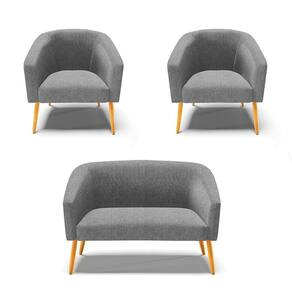 Kit 01 Namoradeira 02 Lugares E 02 Poltronas Stella Linho Pés Palito Castanho - D'rossi Cor A26 Grafite