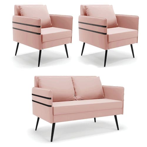 Que tal o kit Namoradeira e Poltrona Mari? Imagine-se utilizando esse kit e usufruindo de todos os benefícios que ele oferece. Pode ser utilizado para evidenciar e enriquecer o seu ambiente, descansar depois de um dia longo de trabalho, ver aquela série favorita ou simplesmente ler seu livro predileto. A estrutura deste conjunto é confeccionada em madeira de eucalipto proveniente de reflorestamento, suportando em média até 120 Kg, possuí Pés Palito de Ferro, garantindo uma maior resistência e durabilidade ao produto, o estofamento do assento e encosto é composto de espuma D-23, revestido em tecido Veludo. Então, se a sua dificuldade é a otimização de espaço, este Kit além de confortável e sofisticado, traz toda a funcionalidade que você precisa. Apenas alguns conjuntos estão disponíveis, separe o seu Kit 01 Namoradeira e 02 Poltronas Mari antes que acabem!Dimensões da Namoradeira: Altura total: 82 cmLargura total: 110 cmProfundidade total: 74 cmAltura do encosto: 35 cmLargura do assento: 104 cmProfundidade do assento: 57 cmAltura do chão ao assento: 47 cmEspessura do assento: 22 cmAltura do chão ao braço: 46 cmAltura interna do braço: 19 cmTamanho dos pés: 25 cmEspessura do braço: 4 cmPeso: 20 kgDimensões da Poltrona: Altura total: 82 cmLargura total: 63 cmProfundidade total: 74 cmAltura do encosto: 51 cmLargura do assento: 54 cmProfundidade do assento: 57 cmAltura do chão ao assento: 47 cmEspessura do assento: 22 cmAltura do chão ao braço: 46 cmAltura interna do braço: 19 cmTamanho dos pés: 25 cmEspessura do braço: 4 cmPeso: 15 kgDimensões da Almofada: Altura total: 34 cmLargura total: 51 cmProfundidade total: 20 cmPeso: 0,3 kgEspecificações do Produto Estrutura: Madeira EucaliptoEspuma: D-23Tecido: VeludoTipo de pés: Pés Palito de FerroPeso suportado: Até 120 KgGarantia: 90 dias contra defeito de fabricaçãoMontagem: O produto vai montado, apenas rosquear os pésInstruções de limpeza: Utilizar um pano limpo e levemente úmidoVocê irá receber: 03 Volumes com 01 Namoradeira e 02 PoltronasObservações Relevantes - Todos os produtos vão embalados com total segurança;- As cores dos produtos podem sofrer alterações dependendo do seu monitor;- Para futuras compras, não garantimos a mesma tonalidade de cor, pois existe variação a cada lote do fabricante do tecido;- As imagens são meramente ilustrativas, não acompanham objetos de decoração e eletros;- Confira as dimensões do produto no momento da compra e certifique-se de que passará normalmente por escadas, elevadores, portas e corredores;- Importante: Por se tratar de estofado as medidas podem ter uma pequena variação em até 3 cm;- Não nos responsabilizamos no ato da entrega por montagens, desmontagens, instalações de produtos;- Não nos responsabilizamos no ato da entrega por subir escadas, elevadores, nem utilização de guinchos ou equipamentos similares para acesso a pisos superiores em apartamentos;- A entrega do produto é realizada em todo território nacional, até onde as rodovias alcançam, entregas fluviais ou aéreas devem ser cotadas a parte;- Observando as orientações acima, evita-se futuros desagrados ou imprevistos com a entrega do produto. Havendo despesas adicionais, serão de responsabilidade do cliente;