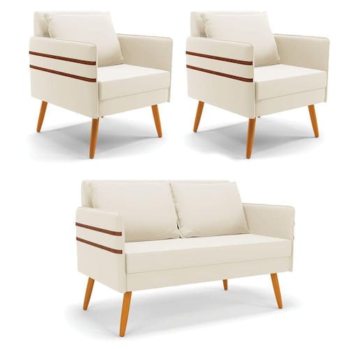 Que tal o kit Namoradeira e Poltrona Mari? Imagine-se utilizando esse kit e usufruindo de todos os benefícios que ele oferece. Pode ser utilizado para evidenciar e enriquecer o seu ambiente, descansar depois de um dia longo de trabalho, ver aquela série favorita ou simplesmente ler seu livro predileto. A estrutura deste conjunto é confeccionada em madeira de eucalipto proveniente de reflorestamento, suportando em média até 120 Kg, possuí pés palito castanho, garantindo uma maior resistência e durabilidade ao produto, o estofamento do assento e encosto é composto de espuma D-23, revestido em tecido Veludo. Então, se a sua dificuldade é a otimização de espaço, este Kit além de confortável e sofisticado, traz toda a funcionalidade que você precisa. Apenas alguns conjuntos estão disponíveis, separe o seu Kit 01 Namoradeira e 02 Poltronas Mari antes que acabem!