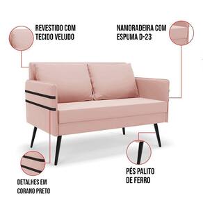 Que tal o kit Namoradeira e Poltrona Mari? Imagine-se utilizando esse kit e usufruindo de todos os benefícios que ele oferece. Pode ser utilizado para evidenciar e enriquecer o seu ambiente, descansar depois de um dia longo de trabalho, ver aquela série favorita ou simplesmente ler seu livro predileto. A estrutura deste conjunto é confeccionada em madeira de eucalipto proveniente de reflorestamento, suportando em média até 120 Kg, possuí Pés Palito de Ferro, garantindo uma maior resistência e durabilidade ao produto, o estofamento do assento e encosto é composto de espuma D-23, revestido em tecido Veludo no tom Rosê. Então, se a sua dificuldade é a otimização de espaço, este Kit além de confortável e sofisticado, traz toda a funcionalidade que você precisa. Apenas alguns conjuntos estão disponíveis, separe o seu Kit 01 Namoradeira e 02 Poltronas Mari antes que acabem! Dimensões da Namoradeira: Altura total: 82 cm Largura total: 110 cm Profundidade total: 74 cm Altura do encosto: 35 cm Largura do assento: 104 cm Profundidade do assento: 57 cm Altura do chão ao assento: 47 cm Espessura do assento: 22 cm Altura do chão ao braço: 46 cm Altura interna do braço: 19 cm Tamanho dos pés: 25 cm Espessura do braço: 4 cm Peso: 20 kg Dimensões da Poltrona: Altura total: 82 cm Largura total: 63 cm Profundidade total: 74 cm Altura do encosto: 51 cm Largura do assento: 54 cm Profundidade do assento: 57 cm Altura do chão ao assento: 47 cm Espessura do assento: 22 cm Altura do chão ao braço: 46 cm Altura interna do braço: 19 cm Tamanho dos pés: 25 cm Espessura do braço: 4 cm Peso: 15 kg Dimensões da Almofada: Altura total: 34 cm Largura total: 51 cm Profundidade total: 20 cm Peso: 0,3 kg Especificações do Produto Estrutura: Madeira Eucalipto Espuma: D-23 Tecido: Veludo Tipo de pés: Pés Palito de Ferro Peso suportado: Até 120 Kg Garantia: 90 dias contra defeito de fabricação Montagem: O produto vai montado, apenas rosquear os pés Instruções de limpeza: Utilizar um pano limpo e levemente úmido Você irá receber: 03 Volumes com 01 Namoradeira e 02 Poltronas Observações Relevantes - Todos os produtos vão embalados com total segurança; - As cores dos produtos podem sofrer alterações dependendo do seu monitor; - Para futuras compras, não garantimos a mesma tonalidade de cor, pois existe variação a cada lote do fabricante do tecido; - As imagens são meramente ilustrativas, não acompanham objetos de decoração e eletros; - Confira as dimensões do produto no momento da compra e certifique-se de que passará normalmente por escadas, elevadores, portas e corredores; - Importante: Por se tratar de estofado as medidas podem ter uma pequena variação em até 3 cm; - Não nos responsabilizamos no ato da entrega por montagens, desmontagens, instalações de produtos; - Não nos responsabilizamos no ato da entrega por subir escadas, elevadores, nem utilização de guinchos ou equipamentos similares para acesso a pisos superiores em apartamentos; - A entrega do produto é realizada em todo território nacional, até onde as rodovias alcançam, entregas fluviais ou aéreas devem ser cotadas a parte; - Observando as orientações acima, evita-se futuros desagrados ou imprevistos com a entrega do produto. Havendo despesas adicionais, serão de responsabilidade do cliente;