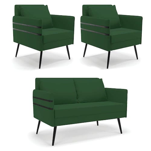 Que tal o kit Namoradeira e Poltrona Mari? Imagine-se utilizando esse kit e usufruindo de todos os benefícios que ele oferece. Pode ser utilizado para evidenciar e enriquecer o seu ambiente, descansar depois de um dia longo de trabalho, ver aquela série favorita ou simplesmente ler seu livro predileto. A estrutura deste conjunto é confeccionada em madeira de eucalipto proveniente de reflorestamento, suportando em média até 120 Kg, possuí Pés Palito de Ferro, garantindo uma maior resistência e durabilidade ao produto, o estofamento do assento e encosto é composto de espuma D-23, revestido em tecido Veludo no tom Verde. Então, se a sua dificuldade é a otimização de espaço, este Kit além de confortável e sofisticado, traz toda a funcionalidade que você precisa. Apenas alguns conjuntos estão disponíveis, separe o seu Kit 01 Namoradeira e 02 Poltronas Mari antes que acabem!
