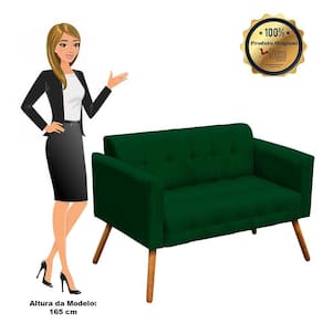 Kit 01 Namoradeira e 02 Poltronas Elisa Suede Verde Pés Palito Castanho D'Rossi