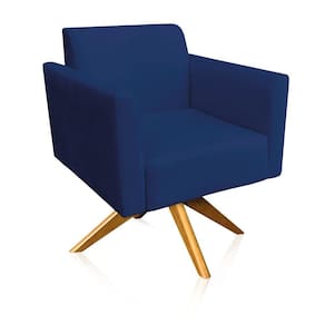 Kit 01 Namoradeira e 02 Poltronas Marisa Suede Azul Marinho Base Giratória Madeira MA30 D'Rossi