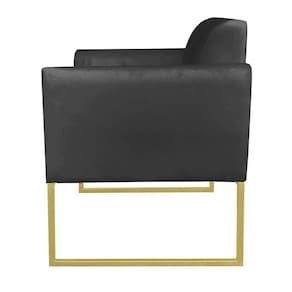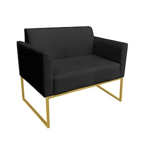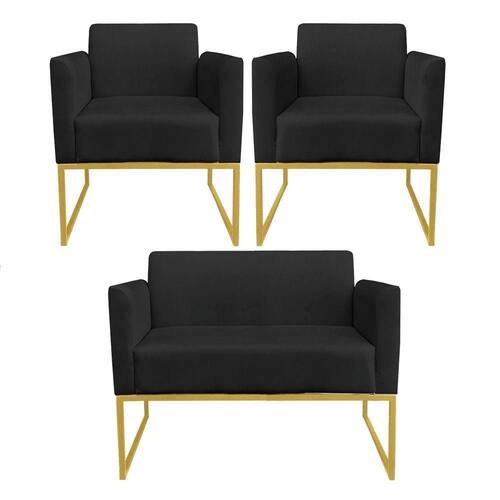 Kit 01 Namoradeira e 02 Poltronas Marisa Suede Preto Base Industrial Metálica Dourado D'Rossi