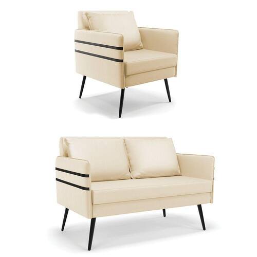 Que tal o kit Namoradeira e Poltrona Mari? Imagine-se utilizando esse kit e usufruindo de todos os benefícios que ele oferece. Pode ser utilizado para evidenciar e enriquecer o seu ambiente, descansar depois de um dia longo de trabalho, ver aquela série favorita ou simplesmente ler seu livro predileto. A estrutura deste conjunto é confeccionada em madeira de eucalipto proveniente de reflorestamento, suportando em média até 120 Kg, possuí Pés Palito de Ferro, garantindo uma maior resistência e durabilidade ao produto, o estofamento do assento e encosto é composto de espuma D-23, revestido em tecido Corino no tom Bege. Então, se a sua dificuldade é a otimização de espaço, este Kit além de confortável e sofisticado, traz toda a funcionalidade que você precisa. Apenas alguns conjuntos estão disponíveis, separe o seu Kit 01 Namoradeira e 01 Poltrona Mari antes que acabem! Dimensões da Namoradeira: Altura total: 82 cm Largura total: 110 cm Profundidade total: 74 cm Altura do encosto: 35 cm Largura do assento: 104 cm Profundidade do assento: 57 cm Altura do chão ao assento: 47 cm Espessura do assento: 22 cm Altura do chão ao braço: 46 cm Altura interna do braço: 19 cm Tamanho dos pés: 25 cm Espessura do braço: 4 cm Peso: 20 kg Dimensões da Poltrona: Altura total: 82 cm Largura total: 63 cm Profundidade total: 74 cm Altura do encosto: 51 cm Largura do assento: 54 cm Profundidade do assento: 57 cm Altura do chão ao assento: 47 cm Espessura do assento: 22 cm Altura do chão ao braço: 46 cm Altura interna do braço: 19 cm Tamanho dos pés: 25 cm Espessura do braço: 4 cm Peso: 15 kg Dimensões da Almofada: Altura total: 34 cm Largura total: 51 cm Profundidade total: 20 cm Peso: 0,3 kg Especificações do Produto Estrutura: Madeira Eucalipto Espuma: D-23 Tecido: Corino Tipo de pés: Pés Palito de Ferro Peso suportado: Até 120 Kg Garantia: 90 dias contra defeito de fabricação Montagem: O produto vai montado, apenas rosquear os pés Instruções de limpeza: Utilizar um pano limpo e levemente úmido Você irá receber: 02 Volumes com 01 Namoradeira e 01 Poltrona Observações Relevantes - Todos os produtos vão embalados com total segurança; - As cores dos produtos podem sofrer alterações dependendo do seu monitor; - Para futuras compras, não garantimos a mesma tonalidade de cor, pois existe variação a cada lote do fabricante do tecido; - As imagens são meramente ilustrativas, não acompanham objetos de decoração e eletros; - Confira as dimensões do produto no momento da compra e certifique-se de que passará normalmente por escadas, elevadores, portas e corredores; - Importante: Por se tratar de estofado as medidas podem ter uma pequena variação em até 3 cm; - Não nos responsabilizamos no ato da entrega por montagens, desmontagens, instalações de produtos; - Não nos responsabilizamos no ato da entrega por subir escadas, elevadores, nem utilização de guinchos ou equipamentos similares para acesso a pisos superiores em apartamentos; - A entrega do produto é realizada em todo território nacional, até onde as rodovias alcançam, entregas fluviais ou aéreas devem ser cotadas a parte; - Observando as orientações acima, evita-se futuros desagrados ou imprevistos com a entrega do produto. Havendo despesas adicionais, serão de responsabilidade do cliente;