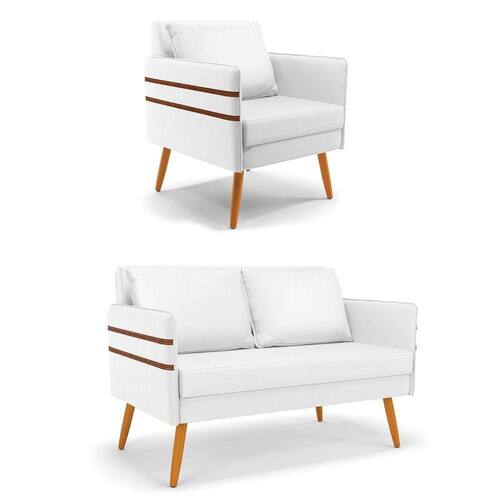 Kit 01 Namoradeira E 01 Poltrona Corino Castanho Branco