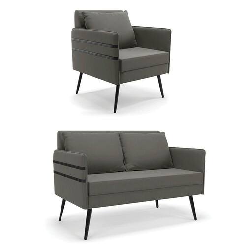 Que tal o kit Namoradeira e Poltrona Mari? Imagine-se utilizando esse kit e usufruindo de todos os benefícios que ele oferece. Pode ser utilizado para evidenciar e enriquecer o seu ambiente, descansar depois de um dia longo de trabalho, ver aquela série favorita ou simplesmente ler seu livro predileto. A estrutura deste conjunto é confeccionada em madeira de eucalipto proveniente de reflorestamento, suportando em média até 120 Kg, possuí Pés Palito de Ferro, garantindo uma maior resistência e durabilidade ao produto, o estofamento do assento e encosto é composto de espuma D-23, revestido em tecido Suede no tom Grafite. Então, se a sua dificuldade é a otimização de espaço, este Kit além de confortável e sofisticado, traz toda a funcionalidade que você precisa. Apenas alguns conjuntos estão disponíveis, separe o seu Kit 01 Namoradeira e 01 Poltrona Mari antes que acabem! Dimensões da Namoradeira: Altura total: 82 cm Largura total: 110 cm Profundidade total: 74 cm Altura do encosto: 35 cm Largura do assento: 104 cm Profundidade do assento: 57 cm Altura do chão ao assento: 47 cm Espessura do assento: 22 cm Altura do chão ao braço: 46 cm Altura interna do braço: 19 cm Tamanho dos pés: 25 cm Espessura do braço: 4 cm Peso: 20 kg Dimensões da Poltrona: Altura total: 82 cm Largura total: 63 cm Profundidade total: 74 cm Altura do encosto: 51 cm Largura do assento: 54 cm Profundidade do assento: 57 cm Altura do chão ao assento: 47 cm Espessura do assento: 22 cm Altura do chão ao braço: 46 cm Altura interna do braço: 19 cm Tamanho dos pés: 25 cm Espessura do braço: 4 cm Peso: 15 kg Dimensões da Almofada: Altura total: 34 cm Largura total: 51 cm Profundidade total: 20 cm Peso: 0,3 kg Especificações do Produto Estrutura: Madeira Eucalipto Espuma: D-23 Tecido: Suede Tipo de pés: Pés Palito de Ferro Peso suportado: Até 120 Kg Garantia: 90 dias contra defeito de fabricação Montagem: O produto vai montado, apenas rosquear os pés Instruções de limpeza: Utilizar um pano limpo e levemente úmido Você irá receber: 02 Volumes com 01 Namoradeira e 01 Poltrona Observações Relevantes - Todos os produtos vão embalados com total segurança; - As cores dos produtos podem sofrer alterações dependendo do seu monitor; - Para futuras compras, não garantimos a mesma tonalidade de cor, pois existe variação a cada lote do fabricante do tecido; - As imagens são meramente ilustrativas, não acompanham objetos de decoração e eletros; - Confira as dimensões do produto no momento da compra e certifique-se de que passará normalmente por escadas, elevadores, portas e corredores; - Importante: Por se tratar de estofado as medidas podem ter uma pequena variação em até 3 cm; - Não nos responsabilizamos no ato da entrega por montagens, desmontagens, instalações de produtos; - Não nos responsabilizamos no ato da entrega por subir escadas, elevadores, nem utilização de guinchos ou equipamentos similares para acesso a pisos superiores em apartamentos; - A entrega do produto é realizada em todo território nacional, até onde as rodovias alcançam, entregas fluviais ou aéreas devem ser cotadas a parte; - Observando as orientações acima, evita-se futuros desagrados ou imprevistos com a entrega do produto. Havendo despesas adicionais, serão de responsabilidade do cliente;
