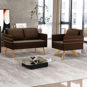 Que tal o kit Namoradeira e Poltrona Mari? Imagine-se utilizando esse kit e usufruindo de todos os benefícios que ele oferece. Pode ser utilizado para evidenciar e enriquecer o seu ambiente, descansar depois de um dia longo de trabalho, ver aquela série favorita ou simplesmente ler seu livro predileto. A estrutura deste conjunto é confeccionada em madeira de eucalipto proveniente de reflorestamento, suportando em média até 120 Kg, a namoradeira possuí pés palito castanho, e a cadeira possui base giratória de madeira, garantindo uma maior resistência e durabilidade ao produto, o estofamento de ambas (assento/encosto) são compostas de espuma D-23, revestidos em tecido Suede. Então, se a sua dificuldade é a otimização de espaço, este Kit além de confortável e sofisticado, traz toda a funcionalidade que você precisa. Apenas alguns conjuntos estão disponíveis, separe o seu Kit 01 Namoradeira e 01 Poltrona Giratória Mari antes que acabem! Dimensões da Namoradeira: Altura total: 82 cm Largura total: 110 cm Profundidade total: 74 cm Altura do encosto: 35 cm Largura do assento: 104 cm Profundidade do assento: 57 cm Altura do chão ao assento: 47 cm Espessura do assento: 22 cm Altura do chão ao braço: 46 cm Altura interna do braço: 19 cm Tamanho dos pés: 25 cm Espessura do braço: 4 cm Peso: 20 kg Dimensões da Poltrona: Altura total: 82 cm Largura total: 63 cm Profundidade total: 74 cm Altura do encosto: 51 cm Largura do assento: 54 cm Profundidade do assento: 57 cm Altura do chão ao assento: 47 cm Espessura do assento: 22 cm Altura do chão ao braço: 46 cm Altura interna do braço: 19 cm Tamanho dos pés: 25 cm Espessura do braço: 4 cm Peso: 15 kg Dimensões da Almofada: Altura total: 34 cm Largura total: 51 cm Profundidade total: 20 cm Peso: 0,3 kg Especificações do Produto Estrutura: Madeira Eucalipto Espuma: D-23 Tecido: Suede Tipo de pés: Pés Palito e Base Giratória Peso suportado: Até 120 Kg Garantia: 90 dias contra defeito de fabricação Montagem: O produto vai montado, apenas rosquear os pés Instruções de limpeza: Utilizar um pano limpo e levemente úmido Você irá receber: 03 Volumes com 01 Namoradeira e 02 Poltronas Observações Relevantes - Todos os produtos vão embalados com total segurança; - As cores dos produtos podem sofrer alterações dependendo do seu monitor; - Para futuras compras, não garantimos a mesma tonalidade de cor, pois existe variação a cada lote do fabricante do tecido; - As imagens são meramente ilustrativas, não acompanham objetos de decoração e eletros; - Confira as dimensões do produto no momento da compra e certifique-se de que passará normalmente por escadas, elevadores, portas e corredores; - Importante: Por se tratar de estofado as medidas podem ter uma pequena variação em até 3 cm; - Não nos responsabilizamos no ato da entrega por montagens, desmontagens, instalações de produtos; - Não nos responsabilizamos no ato da entrega por subir escadas, elevadores, nem utilização de guinchos ou equipamentos similares para acesso a pisos superiores em apartamentos; - A entrega do produto é realizada em todo território nacional, até onde as rodovias alcançam, entregas fluviais ou aéreas devem ser cotadas a parte; - Observando as orientações acima, evita-se futuros desagrados ou imprevistos com a entrega do produto. Havendo despesas adicionais, serão de responsabilidade do cliente;