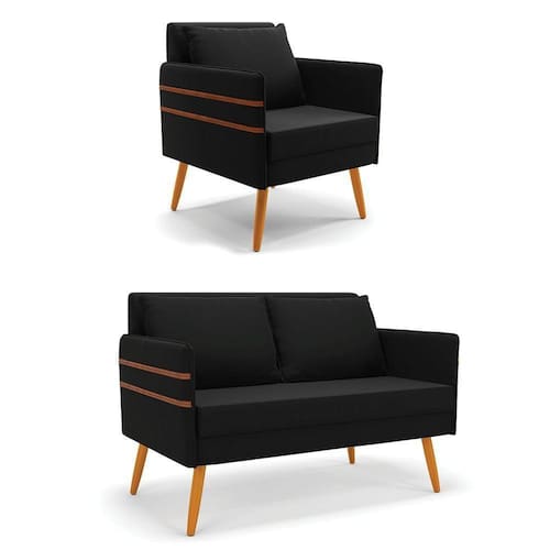 Que tal o kit Namoradeira e Poltrona Mari? Imagine-se utilizando esse kit e usufruindo de todos os benefícios que ele oferece. Pode ser utilizado para evidenciar e enriquecer o seu ambiente, descansar depois de um dia longo de trabalho, ver aquela série favorita ou simplesmente ler seu livro predileto. A estrutura deste conjunto é confeccionada em madeira de eucalipto proveniente de reflorestamento, suportando em média até 120 Kg, possuí pés palito castanho, garantindo uma maior resistência e durabilidade ao produto, o estofamento do assento e encosto é composto de espuma D-23, revestido em tecido Suede no tom Preto. Então, se a sua dificuldade é a otimização de espaço, este Kit além de confortável e sofisticado, traz toda a funcionalidade que você precisa. Apenas alguns conjuntos estão disponíveis, separe o seu Kit 01 Namoradeira e 01 Poltrona Mari antes que acabem!