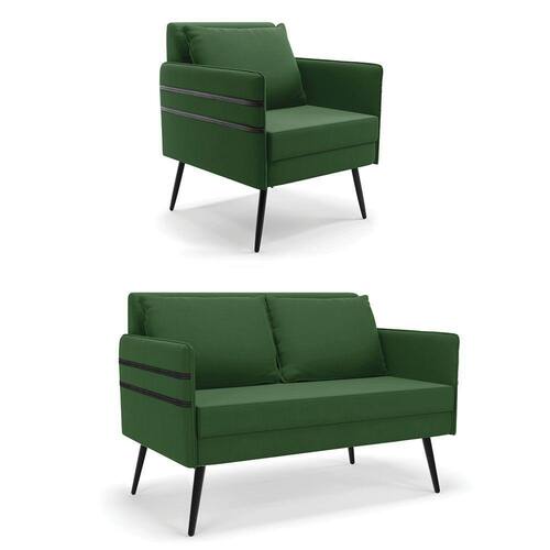 Que tal o kit Namoradeira e Poltrona Mari? Imagine-se utilizando esse kit e usufruindo de todos os benefícios que ele oferece. Pode ser utilizado para evidenciar e enriquecer o seu ambiente, descansar depois de um dia longo de trabalho, ver aquela série favorita ou simplesmente ler seu livro predileto. A estrutura deste conjunto é confeccionada em madeira de eucalipto proveniente de reflorestamento, suportando em média até 120 Kg, possuí Pés Palito de Ferro, garantindo uma maior resistência e durabilidade ao produto, o estofamento do assento e encosto é composto de espuma D-23, revestido em tecido Suede. Então, se a sua dificuldade é a otimização de espaço, este Kit além de confortável e sofisticado, traz toda a funcionalidade que você precisa. Apenas alguns conjuntos estão disponíveis, separe o seu Kit 01 Namoradeira e 01 Poltrona Mari antes que acabem! Dimensões da Namoradeira: Altura total: 82 cm Largura total: 110 cm Profundidade total: 74 cm Altura do encosto: 35 cm Largura do assento: 104 cm Profundidade do assento: 57 cm Altura do chão ao assento: 47 cm Espessura do assento: 22 cm Altura do chão ao braço: 46 cm Altura interna do braço: 19 cm Tamanho dos pés: 25 cm Espessura do braço: 4 cm Peso: 20 kg Dimensões da Poltrona: Altura total: 82 cm Largura total: 63 cm Profundidade total: 74 cm Altura do encosto: 51 cm Largura do assento: 54 cm Profundidade do assento: 57 cm Altura do chão ao assento: 47 cm Espessura do assento: 22 cm Altura do chão ao braço: 46 cm Altura interna do braço: 19 cm Tamanho dos pés: 25 cm Espessura do braço: 4 cm Peso: 15 kg Dimensões da Almofada: Altura total: 34 cm Largura total: 51 cm Profundidade total: 20 cm Peso: 0,3 kg Especificações do Produto Estrutura: Madeira Eucalipto Espuma: D-23 Tecido: Suede Tipo de pés: Pés Palito de Ferro Peso suportado: Até 120 Kg Garantia: 90 dias contra defeito de fabricação Montagem: O produto vai montado, apenas rosquear os pés Instruções de limpeza: Utilizar um pano limpo e levemente úmido Você irá receber: 02 Volumes com 01 Namoradeira e 01 Poltrona Observações Relevantes - Todos os produtos vão embalados com total segurança; - As cores dos produtos podem sofrer alterações dependendo do seu monitor; - Para futuras compras, não garantimos a mesma tonalidade de cor, pois existe variação a cada lote do fabricante do tecido; - As imagens são meramente ilustrativas, não acompanham objetos de decoração e eletros; - Confira as dimensões do produto no momento da compra e certifique-se de que passará normalmente por escadas, elevadores, portas e corredores; - Importante: Por se tratar de estofado as medidas podem ter uma pequena variação em até 3 cm; - Não nos responsabilizamos no ato da entrega por montagens, desmontagens, instalações de produtos; - Não nos responsabilizamos no ato da entrega por subir escadas, elevadores, nem utilização de guinchos ou equipamentos similares para acesso a pisos superiores em apartamentos; - A entrega do produto é realizada em todo território nacional, até onde as rodovias alcançam, entregas fluviais ou aéreas devem ser cotadas a parte; - Observando as orientações acima, evita-se futuros desagrados ou imprevistos com a entrega do produto. Havendo despesas adicionais, serão de responsabilidade do cliente;