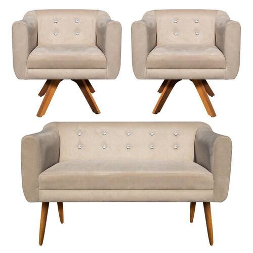 Kit Namoradeira 02 Lugares e 02 Poltronas Giratória Julia Suede com Strass - D'Rossi