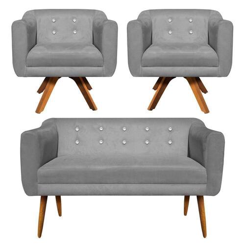 Kit 01 Namoradeira E 02 Poltronas Julia Suede Grafite