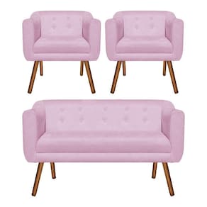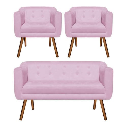 Que tal renovar o seu ambiente? O Kit Namoradeira com Poltrona Julia é cheia de personalidade, e trás estilo e elegância na decoração, ela vai te surpreender. Compacta e com um design incrível ela vai se adaptar perfeitamente em qualquer ambiente seja sua sala, quarto ou home office, você vai se apaixonar por esse conjunto. Com base em madeira ela remete a uma poltrona moderna, rica em curvas e detalhes no estilo botonê, com botões encapados. Com conforto e elegância na medida certa proporcionado pela estrutura de madeira de eucalipto proveniente de reflorestamento, espuma com densidade D-26 (encosto e no assento), revestimento de tecido linha alta, um charme! Dimensões Poltrona: Altura total: 81 cm Largura total: 71 cm Profundidade total: 59 cm Altura do encosto: 37 cm Largura do assento: 49 cm Profundidade do assento: 49 cm Altura do chão ao assento: 48 cm Espessura do assento: 18 cm Tamanho dos pés: 30 cm Altura do chão ao braço: 72 cm Altura interna do braço: 27 cm Espessura do braço: 12 cm Peso: 18 kg Namoradeira: Altura total: 82 cm Largura total: 118 cm Profundidade total: 62 cm Altura do encosto: 38 cm Largura do assento: 98 cm Profundidade do assento: 47 cm Altura do chão ao assento: 47 cm Espessura do assento: 17 cm Tamanho dos pés: 30 cm Altura do chão ao braço: 72 cm Altura interna do braço: 25 cm Espessura do braço: 10 cm Peso: 20 kg Especificações do Produto Estrutura: Madeira Eucalipto Espuma: D-26 Tecido: Suede (100% Poliéster) Tipo de pés: Pés palito Peso Suportado: Até 120 Kg por assento Garantia: 90 dias contra defeito de fabricação Montagem: O produto vai montado, apenas rosquear os pés e parafusar a base Instruções de Limpeza: Utilizar um pano limpo e levemente úmido Você irá receber: 02 volumes com 03 Produtos Observações Relevantes - Todos os produtos vão embalados com total segurança; - As cores dos produtos podem sofrer alterações dependendo do seu monitor; - Para futuras compras, não garantimos a mesma tonalidade de cor, pois existe variação a cada lote do fabricante do tecido; - As imagens são meramente ilustrativas, não acompanham objetos de decoração e eletros; - Confira as dimensões do produto no momento da compra e certifique-se de que passará normalmente por escadas, elevadores, portas e corredores; - Importante: Por se tratar de estofado as medidas podem ter uma pequena variação em até 3 cm; - Não nos responsabilizamos no ato da entrega por montagens, desmontagens, instalações de produtos; - Não nos responsabilizamos no ato da entrega por subir escadas, elevadores, nem utilização de guinchos ou equipamentos similares para acesso a pisos superiores em apartamentos; - Observando as orientações acima, evita-se futuros desagrados ou imprevistos com a entrega do produto. Havendo despesas adicionais, serão de responsabilidade do cliente;