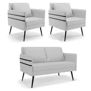 Que tal o kit Namoradeira e Poltrona Mari? Imagine-se utilizando esse kit e usufruindo de todos os benefícios que ele oferece. Pode ser utilizado para evidenciar e enriquecer o seu ambiente, descansar depois de um dia longo de trabalho, ver aquela série favorita ou simplesmente ler seu livro predileto. A estrutura deste conjunto é confeccionada em madeira de eucalipto proveniente de reflorestamento, suportando em média até 120 Kg, possuí Pés Palito de Ferro, garantindo uma maior resistência e durabilidade ao produto, o estofamento do assento e encosto é composto de espuma D-23, revestido em tecido Linho. Então, se a sua dificuldade é a otimização de espaço, este Kit além de confortável e sofisticado, traz toda a funcionalidade que você precisa. Apenas alguns conjuntos estão disponíveis, separe o seu Kit 01 Namoradeira e 02 Poltronas Mari antes que acabem! Dimensões da Namoradeira: Altura total: 82 cm Largura total: 110 cm Profundidade total: 74 cm Altura do encosto: 35 cm Largura do assento: 104 cm Profundidade do assento: 57 cm Altura do chão ao assento: 47 cm Espessura do assento: 22 cm Altura do chão ao braço: 46 cm Altura interna do braço: 19 cm Tamanho dos pés: 25 cm Espessura do braço: 4 cm Peso: 20 kg Dimensões da Poltrona: Altura total: 82 cm Largura total: 63 cm Profundidade total: 74 cm Altura do encosto: 51 cm Largura do assento: 54 cm Profundidade do assento: 57 cm Altura do chão ao assento: 47 cm Espessura do assento: 22 cm Altura do chão ao braço: 46 cm Altura interna do braço: 19 cm Tamanho dos pés: 25 cm Espessura do braço: 4 cm Peso: 15 kg Dimensões da Almofada: Altura total: 34 cm Largura total: 51 cm Profundidade total: 20 cm Peso: 0,3 kg Especificações do Produto Estrutura: Madeira Eucalipto Espuma: D-23 Tecido: Linho Tipo de pés: Pés Palito de Ferro Peso suportado: Até 120 Kg Garantia: 90 dias contra defeito de fabricação Montagem: O produto vai montado, apenas rosquear os pés Instruções de limpeza: Utilizar um pano limpo e levemente úmido Você irá receber: 03 Volumes com 01 Namoradeira e 02 Poltronas Observações Relevantes - Todos os produtos vão embalados com total segurança; - As cores dos produtos podem sofrer alterações dependendo do seu monitor; - Para futuras compras, não garantimos a mesma tonalidade de cor, pois existe variação a cada lote do fabricante do tecido; - As imagens são meramente ilustrativas, não acompanham objetos de decoração e eletros; - Confira as dimensões do produto no momento da compra e certifique-se de que passará normalmente por escadas, elevadores, portas e corredores; - Importante: Por se tratar de estofado as medidas podem ter uma pequena variação em até 3 cm; - Não nos responsabilizamos no ato da entrega por montagens, desmontagens, instalações de produtos; - Não nos responsabilizamos no ato da entrega por subir escadas, elevadores, nem utilização de guinchos ou equipamentos similares para acesso a pisos superiores em apartamentos; - A entrega do produto é realizada em todo território nacional, até onde as rodovias alcançam, entregas fluviais ou aéreas devem ser cotadas a parte; - Observando as orientações acima, evita-se futuros desagrados ou imprevistos com a entrega do produto. Havendo despesas adicionais, serão de responsabilidade do cliente;