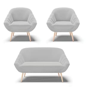 A poltrona Giovana é uma peça indispensável para momentos de descanso depois de um dia longo de trabalho. E não há nada melhor que poder relaxar em um móvel de extremo conforto não é mesmo! Afinal ela dará aquele toque de perfeição ao seu ambiente. Ela conta com uma estrutura reforçada em madeira eucalipto que oferece alta resistência e qualidade ao móvel. Produzida com Pés Palito Natural que suporta até 120kg, seu estofamento é com espuma de densidade D-23. A namoradeira 02 Lugares traz consigo um toque de delicadeza por conta do formato arredondado de seu encosto, garantindo além de muito conforto uma personalidade única para seu ambiente. Produzida em madeira reflorestada de eucalipto, estofada em Espuma D-23, os pés são em madeira garantindo uma maior resistência ao produto. Sua durabilidade e conforto é seu diferencial. Adquira já seu Kit 01 Namoradeira 02 Lugares e 02 Poltronas no tecido Suede no tom Cinza!