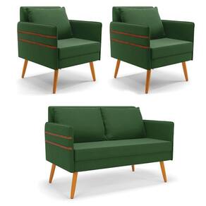 Que tal o kit Namoradeira e Poltrona Mari? Imagine-se utilizando esse kit e usufruindo de todos os benefícios que ele oferece. Pode ser utilizado para evidenciar e enriquecer o seu ambiente, descansar depois de um dia longo de trabalho, ver aquela série favorita ou simplesmente ler seu livro predileto. A estrutura deste conjunto é confeccionada em madeira de eucalipto proveniente de reflorestamento, suportando em média até 120 Kg, possuí pés palito castanho, garantindo uma maior resistência e durabilidade ao produto, o estofamento do assento e encosto é composto de espuma D-23, revestido em tecido Suede no tom Verde. Então, se a sua dificuldade é a otimização de espaço, este Kit além de confortável e sofisticado, traz toda a funcionalidade que você precisa. Apenas alguns conjuntos estão disponíveis, separe o seu Kit 01 Namoradeira e 02 Poltronas Mari antes que acabem!