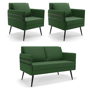 Que tal o kit Namoradeira e Poltrona Mari? Imagine-se utilizando esse kit e usufruindo de todos os benefícios que ele oferece. Pode ser utilizado para evidenciar e enriquecer o seu ambiente, descansar depois de um dia longo de trabalho, ver aquela série favorita ou simplesmente ler seu livro predileto. A estrutura deste conjunto é confeccionada em madeira de eucalipto proveniente de reflorestamento, suportando em média até 120 Kg, possuí Pés Palito de Ferro, garantindo uma maior resistência e durabilidade ao produto, o estofamento do assento e encosto é composto de espuma D-23, revestido em tecido Suede no tom Verde. Então, se a sua dificuldade é a otimização de espaço, este Kit além de confortável e sofisticado, traz toda a funcionalidade que você precisa. Apenas alguns conjuntos estão disponíveis, separe o seu Kit 01 Namoradeira e 02 Poltronas Mari antes que acabem! Dimensões da Namoradeira: Altura total: 82 cm Largura total: 110 cm Profundidade total: 74 cm Altura do encosto: 35 cm Largura do assento: 104 cm Profundidade do assento: 57 cm Altura do chão ao assento: 47 cm Espessura do assento: 22 cm Altura do chão ao braço: 46 cm Altura interna do braço: 19 cm Tamanho dos pés: 25 cm Espessura do braço: 4 cm Peso: 20 kg Dimensões da Poltrona: Altura total: 82 cm Largura total: 63 cm Profundidade total: 74 cm Altura do encosto: 51 cm Largura do assento: 54 cm Profundidade do assento: 57 cm Altura do chão ao assento: 47 cm Espessura do assento: 22 cm Altura do chão ao braço: 46 cm Altura interna do braço: 19 cm Tamanho dos pés: 25 cm Espessura do braço: 4 cm Peso: 15 kg Dimensões da Almofada: Altura total: 34 cm Largura total: 51 cm Profundidade total: 20 cm Peso: 0,3 kg Especificações do Produto Estrutura: Madeira Eucalipto Espuma: D-23 Tecido: Suede Tipo de pés: Pés Palito de Ferro Peso suportado: Até 120 Kg Garantia: 90 dias contra defeito de fabricação Montagem: O produto vai montado, apenas rosquear os pés Instruções de limpeza: Utilizar um pano limpo e levemente úmido Você irá receber: 03 Volumes com 01 Namoradeira e 02 Poltronas Observações Relevantes - Todos os produtos vão embalados com total segurança; - As cores dos produtos podem sofrer alterações dependendo do seu monitor; - Para futuras compras, não garantimos a mesma tonalidade de cor, pois existe variação a cada lote do fabricante do tecido; - As imagens são meramente ilustrativas, não acompanham objetos de decoração e eletros; - Confira as dimensões do produto no momento da compra e certifique-se de que passará normalmente por escadas, elevadores, portas e corredores; - Importante: Por se tratar de estofado as medidas podem ter uma pequena variação em até 3 cm; - Não nos responsabilizamos no ato da entrega por montagens, desmontagens, instalações de produtos; - Não nos responsabilizamos no ato da entrega por subir escadas, elevadores, nem utilização de guinchos ou equipamentos similares para acesso a pisos superiores em apartamentos; - A entrega do produto é realizada em todo território nacional, até onde as rodovias alcançam, entregas fluviais ou aéreas devem ser cotadas a parte; - Observando as orientações acima, evita-se futuros desagrados ou imprevistos com a entrega do produto. Havendo despesas adicionais, serão de responsabilidade do cliente;