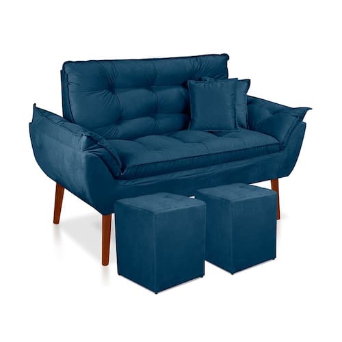 Estrutura: Madeira de Eucalipto; Revestimento: Suede; Assento: Fibra Siliconada percintas elásticas de 50mm; Encosto: Fibra Siliconada Modelo dos Pés: Redondo ; Material dos Pés: Pés Palito Quantidade de Pés: 4; Quantidade de Lugares: 2 Grampos: de aço galvanizados; Revestimento: Tecido Suede.