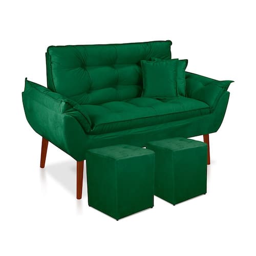 Estrutura: Madeira de Eucalipto; Revestimento: Suede; Assento: Fibra Siliconada percintas elásticas de 50mm; Encosto: Fibra Siliconada Modelo dos Pés: Redondo ; Material dos Pés: Pés Palito Quantidade de Pés: 4; Quantidade de Lugares: 2 Grampos: de aço galvanizados; Revestimento: Tecido Suede.