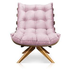 Kit 01 Poltrona E 01 Puff Giratório Costela Suede Base Madeira Ma25 D'rossi Cor Rosa Bebê