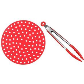 Kit 01 Protetor Silicone Para Air Fryer 20Cm + 1 Pegador Pinça Kit Protetor de silicone para Air fryer redondo 20cm + pegador Pinça 25 cm. Proteção em silicone para Air Fryer Fritadeira Elétrica.Aderente, o objetivo é proteger e não grudar os alimentos no cesto.Feito com material de alta qualidade, 100% silicone para uso alimentar.Não contém BPA. Flexível e resistente, suporta temperaturas de até 230º.Atende Air Fryer Fritadeiras diversas marcas ,Que tenha medidas aproximadas do suporte.-diâmetro aproximado: 20cm.........................................................................................................................----PEGADOR PINÇA 25 CM---Possui como material o aço inox no cabo e pinça de plástico.Protege suas panelas de arranhões.Pode ser manejado em fritadeiras elétricas, fogões, churrasqueiras etcs.Características do produto:- Material: cabo em aço inoxidável e pegador em plástico;- Resistente ao calor;- Não arranha- Design anatômico;- Material inovador e moderno;-comprimento; 25 cm