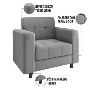 Sua sala está sem graça? Aqui na DRossi você encontra a solução perfeita para você! O Kit Arezzo vai deixar seu ambiente cheio de elegância! Além de combinar com qualquer tipo de decoração, ainda conta com um design moderno e muito confortável. Confeccionado com percintas elásticas, que garantem durabilidade e alta resistência a estrutura em madeira de reflorestamento, portanto acreditamos que podemos te oferecer peças lindas sem prejudicar o meio ambiente, afinal cuidar do mundo é nosso dever. E tem mais! Os pés são Chanfrado Tabaco um material de excelente qualidade trazendo mais beleza à peça. Possui preenchimento em espuma de excelente qualidade, densidade D-23 no assento e nos braços, no encosto; fibra siliconada e revestimento em tecido Linho. Sem dúvidas é a melhor escolha para sua casa. Aproveite! Garanta já seu Kit 01 Sofá 03 Lugares e 01 Poltrona e deixe sua casa ainda mais linda! Temos os melhores produtos e eles estão com preços imperdíveis.