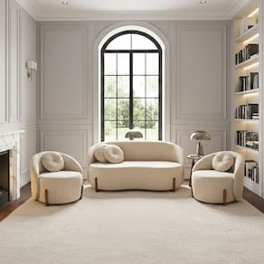 Kit 01 Sofá 2 Lugares + 02 Poltronas Orgânicos c/ Almofadas Curvo Sala Recepção Amsterdã Boucle Bege - Montanari`s Decor