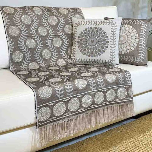 Tecido premium: a manta e as capas das almofadas são confeccionadas em tecido linho fio tinto (53% poliéster e 47% algodão – 389g/m), proporcionando um toque sofisticado e resistente; Enchimento macio: as almofadas possuem 300g de fibra 100% poliéster siliconizada, oferecendo volume e conforto; Refil de qualidade: feito em TNT 100% polipropileno, garantindo durabilidade e estrutura às almofadas; Acabamento refinado: as capas das almofadas possuem fechamento em zíper invisível, facilitando a remoção e a limpeza.