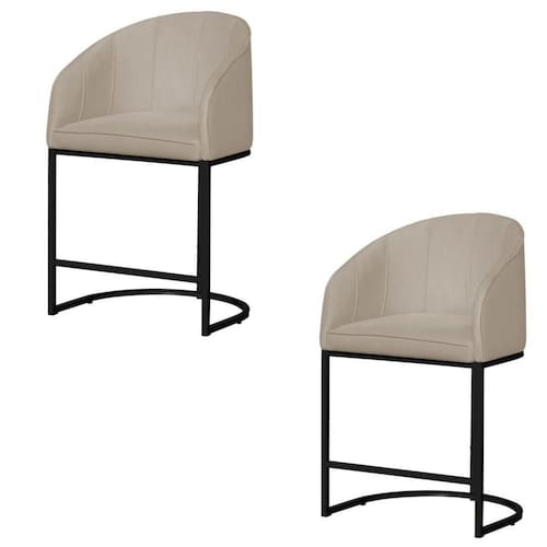 Kit 02 Banco Banqueta Poltrona Mia Base Metal Preta Suede Cor:bege